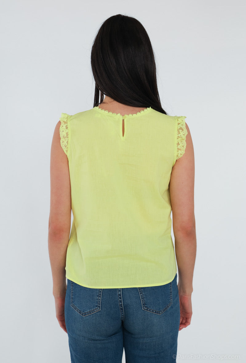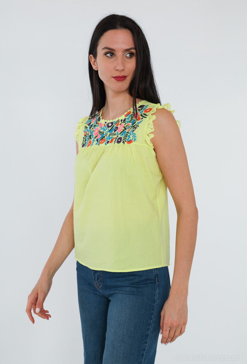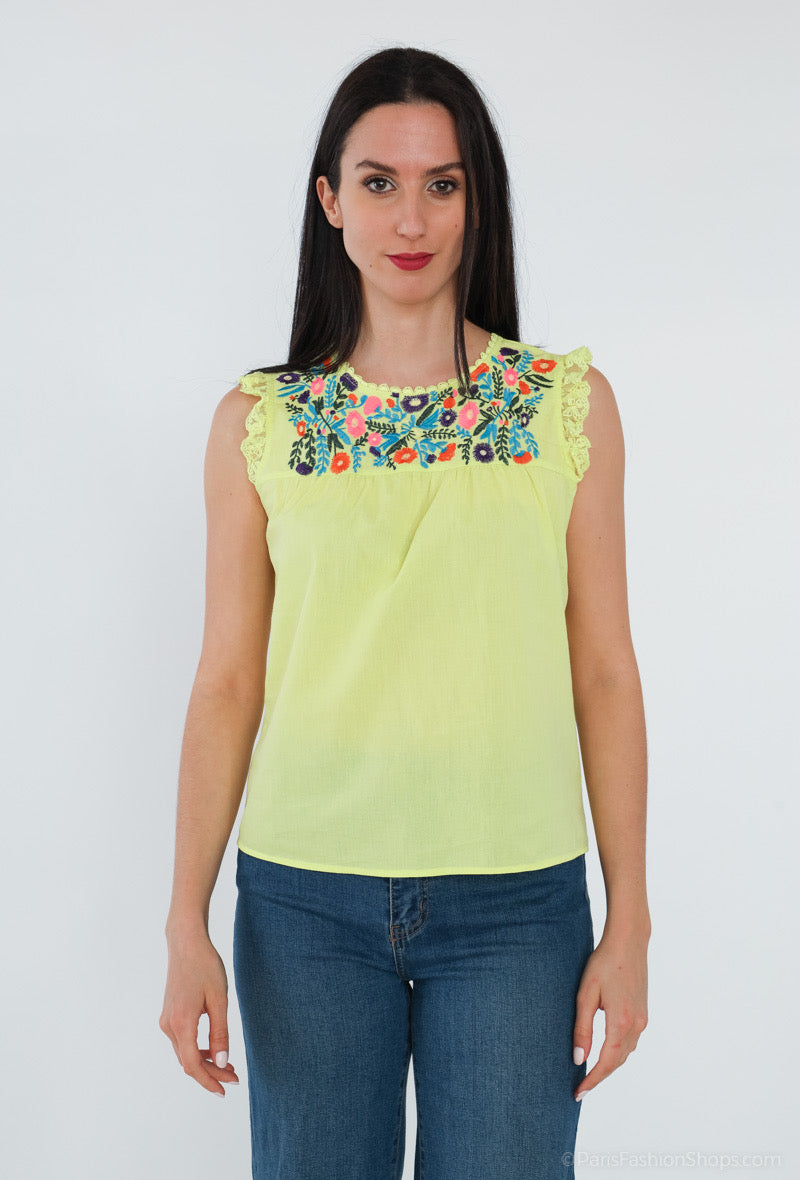 T-shirt sans manches jaune avec broderie